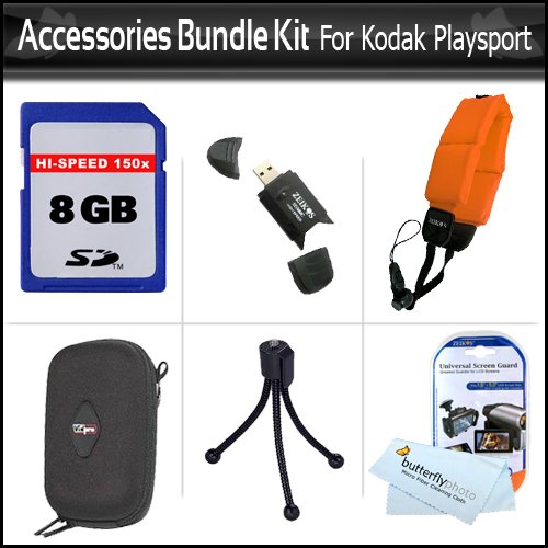Accessories Bundle Kit For Kodak PlaySport (Zx5) HD Waterproof Pocket Video Camera (2nd Generation) NEWEST MODEL Includes 8GB High Speed SD Memory Card + Hard Case + USB 2.0 Card Reader + Float Strap + Screen Protectors + Mini Tripod + MicroFiber Cloth Review