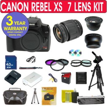 Canon Rebel XS 10.1 MP Digital SLR Camera with Tamron 28-80mm Zoom Lens + .40x Superwide Angle Fisheye Lens + 2x Telephoto Lens + +1,+2,+4,+10 Close Up Macro Kit + UV Filter + PL Filter + FLD Filter + 4 GIG Memory Card + 50" Tripod + Camera System Bag + 6 Piece Starter Kit +3 Year Celltime Warranty Repair Package Review