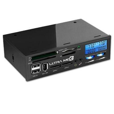 Ultra MD3 5.25 4 port, USB 2.0 card reader. The versatile new Ultra MD3 Media Dashboard fan controller features a high-speed USB 2.0 hub that's an all-in-one media card reader. Plus, 1394 FireWire port, eSATA ports, and an LCD fan controller with a readout panel that reveals the CPU and system temperatures, and fan speed. No additional power needed. And the Ultra MD3 supports most sound cards. Please see complete specifications below, because the Ultra MD3 Media Dashboard has plenty of remarkable features that speak for themselves. Take total control of your system's temperature performance with the Ultra MD3 Media Dashboard fan controller.